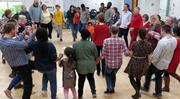 village hall full of dancers
